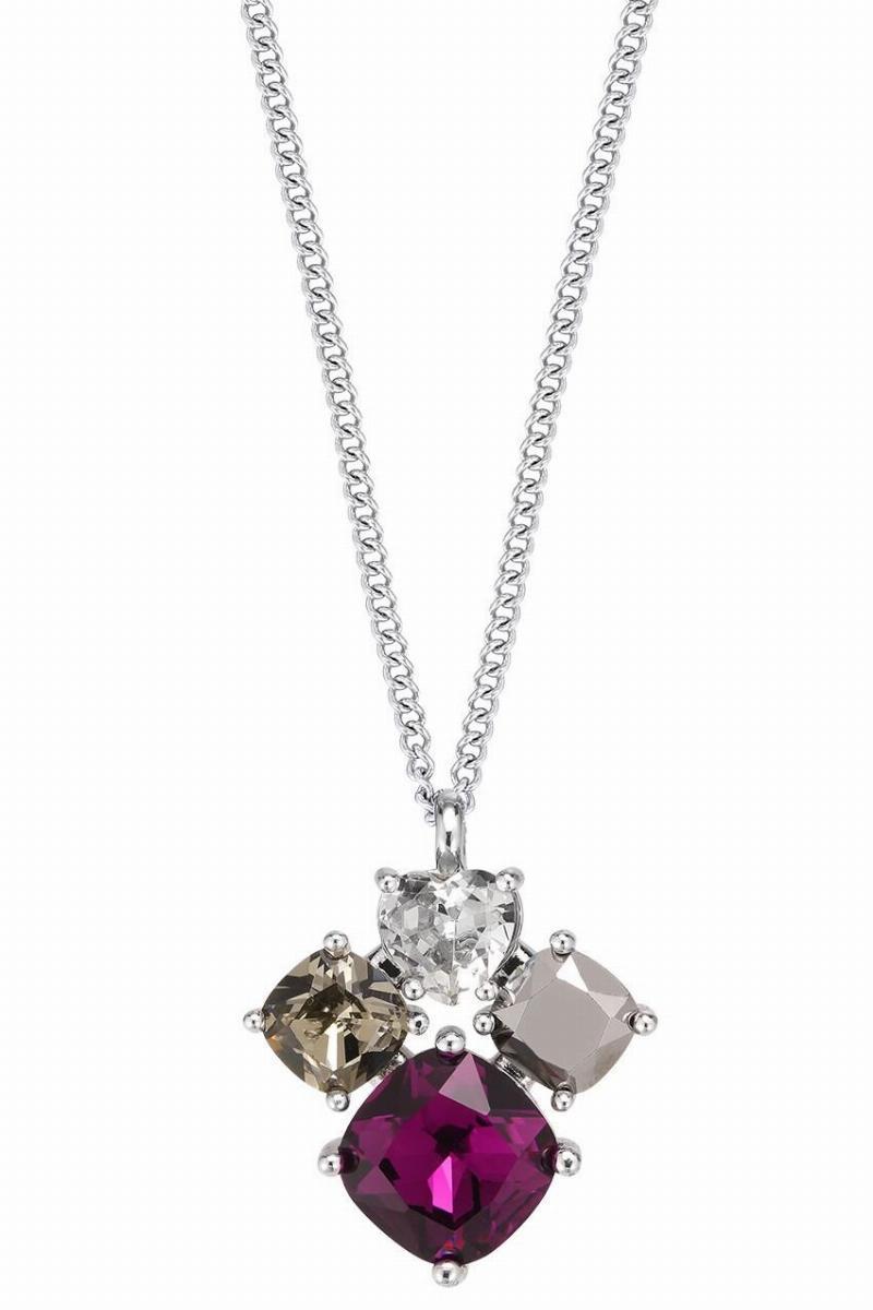 Halskædet prydes af et vedhæng, der består af en smuk sammensætning af aubergine glaskrystaller. Denne farvekombination giver halskædet en eksklusiv og sofistikeret look, som gør det ideelt til både hverdag og festlige anledninger.