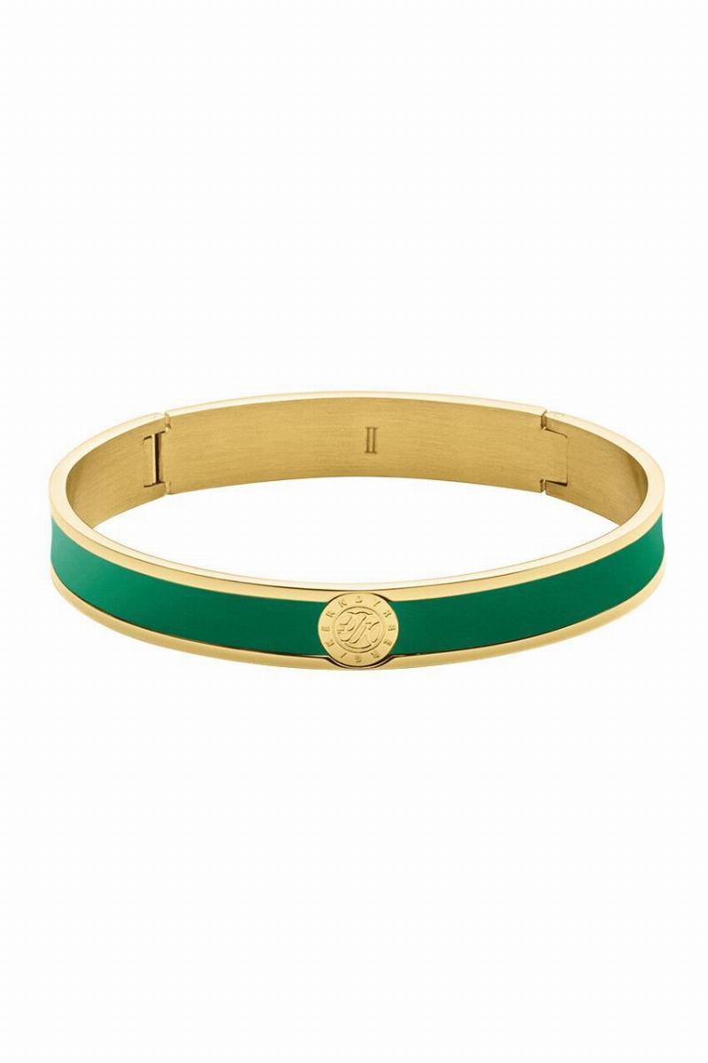 Oplev det enestående Dyrberg/Kern Pennika Armbånd, som vores smykkeagent har fundet til dig! Dette armbånd er ikke bare et smykke; det er en ægte fornøjelse for øjet og et must-have i enhver smykkesamling. Med sin elegante guldtonede finish og den iøjnefaldende smaragdgrønne emalje dekoration, vil dette armbånd uden tvivl tilføje et strejf af luksus til dit look.