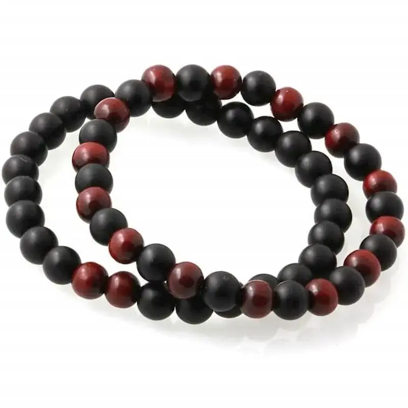 – Materiale: Armbåndene er lavet med 8 mm perler, der kombinerer mat onyx og mahogni for en sofistikeret og moderne look