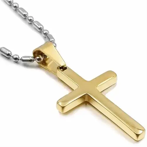 **Forgyldt Kors I Stål Med Kæde – Golden**