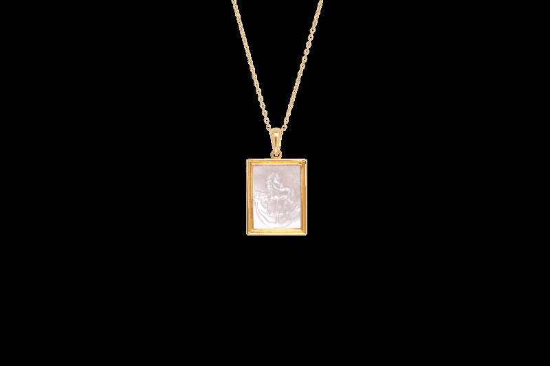Smykket er fremstillet af 100% recycled 22 karat guldbelagt 925 sterlingsølv, hvilket ikke kun gør det bæredygtigt, men også sikrer en høj kvalitet, der holder i mange år. Den håndskårne perlemor-sten giver et unikt touch med sine skiftende nuancer og glans, der fanger lyset på en fantastisk måde. Dette vedhæng er designet til at være både tidløst og moderne.
