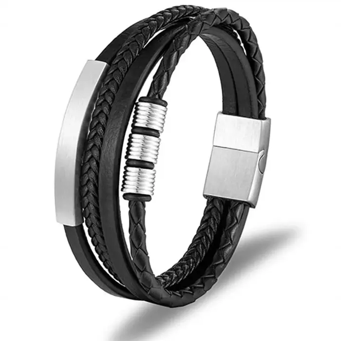 Armbåndet kombinerer det bløde, naturlige læder med holdbart rustfrit stål, hvilket skaber en perfekt balance mellem elegance og robusthed. Den unikke udformning gør det til et iøjnefaldende accessory, der helt sikkert vil vække opsigt uanset hvor du går. Uanset om du skal til en fest, på arbejde eller blot ønsker at pifte din hverdagsstil op, så er dette armbånd den ideelle følgesvend.