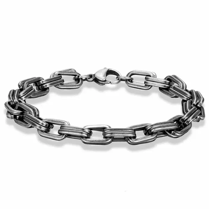 Armbåndet er oxyderet og præsenterer sig med dobbelte links, hvilket giver en rå og maskulin æstetik. Det er perfekt til mænd, der ønsker at tilføje et strejf af elegance og styrke til deres look. Uanset om du skal til fest eller blot ønsker at opgradere din daglige stil, vil dette armbånd være det ideelle valg.