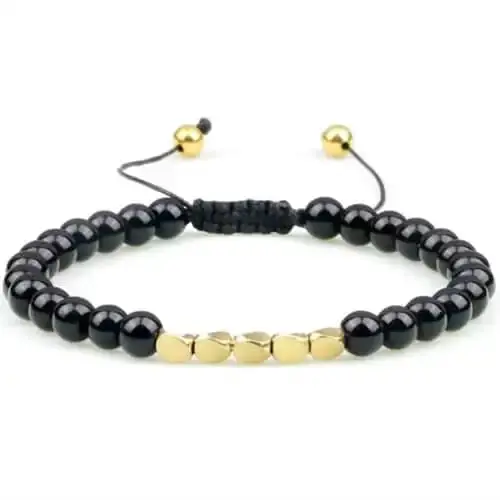 Dette fantastiske armbånd er designet med omhu og omtanke. Det består af 6 mm blackstone perler, der udstråler en dybde og skønhed, som fanger blikket. Blackstone er ikke bare en smuk sten; den siges også at have beskyttende egenskaber, hvilket gør dette armbånd til mere end blot et stilfuldt accessory. De forgyldte beads tilfører et luksuriøst element, der komplementerer de mørke perler perfekt og giver armbåndet en elegant glans.