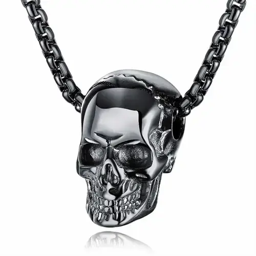 Oplev det unikke Sort Skull Halssmykke, som vores smykkeagent har opdaget hos Marjoe.dk. Dette halskæde er en perfekt kombination af stil og attitude, der vil gøre et stærkt indtryk.