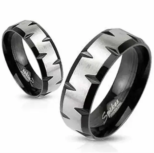 Denne ring er ikke bare en almindelig ring; den er designet med et vildt trendy blackcoat-finish og en børstet ståloverflade, der giver den et unikt og maskulint udtryk. De små hakker på ringen tilføjer et cool og råt look, som gør den perfekt til både hverdag og festlige lejligheder.