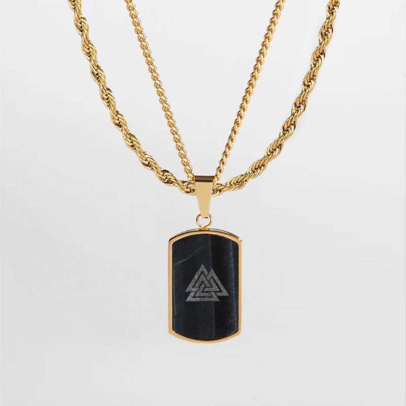 Valknut-symbolet, som pryder dette smykke, har dybe rødder i nordisk mytologi og symboliserer livets cyklus og forbindelsen mellem verdenerne. Det er ikke kun et smykke; det er en fortælling om styrke og mod. Kombinationen af Valknut-designet med det robuste reb-element giver dig et unikt look, der skiller sig ud fra mængden.